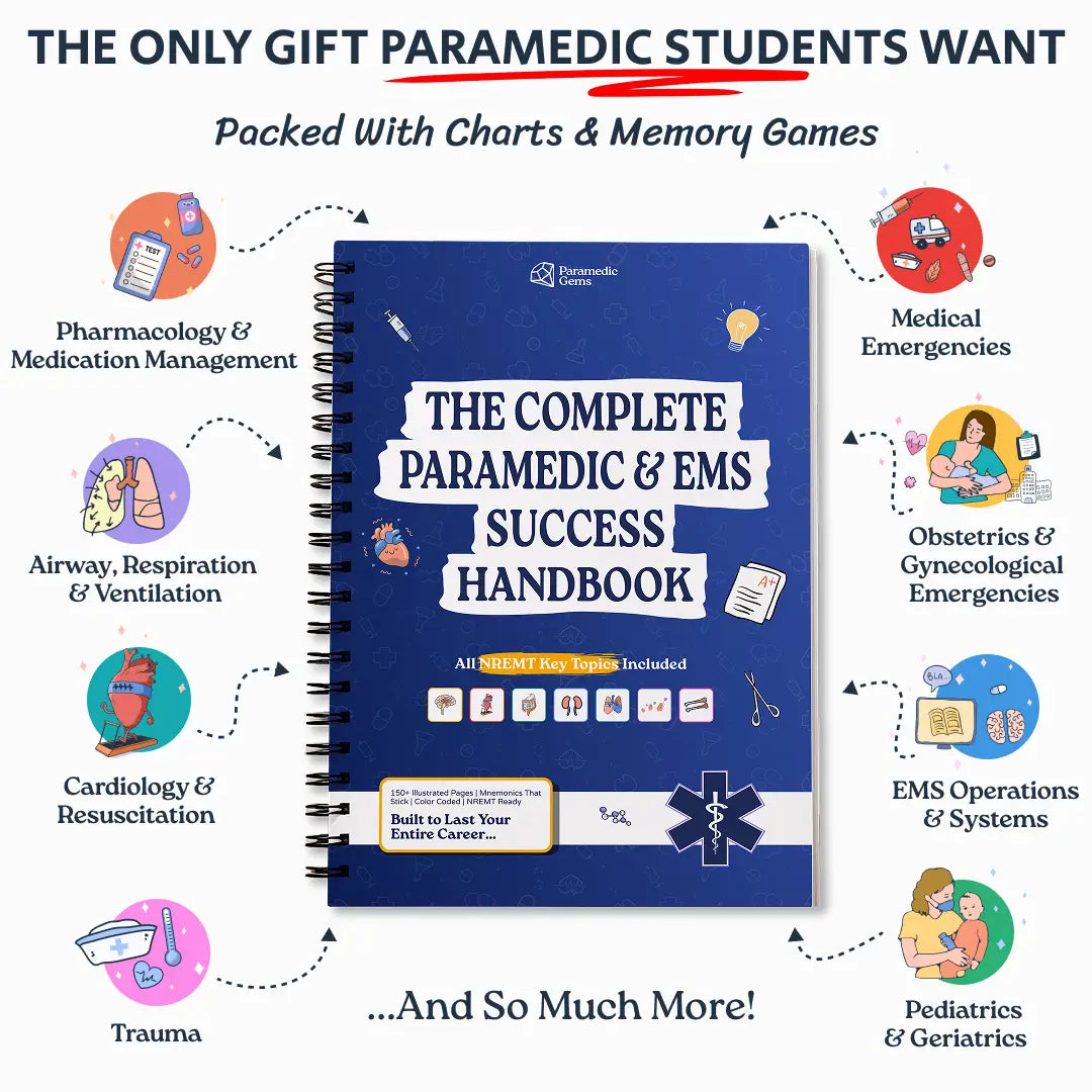 Say goodbye to dense textbooks, endless presentations, and overwhelming PowerPoint slides. The Complete Paramedic & EMS Success Handbook is a 150+ page powerhouse designed to make learning fast, memorable, and practical. Packed with color-coded notes, real-world scenarios, memory hacks, and vivid diagrams, this bundle turns chaos into clarity—helping you master the NREMT, CCP-C, or FP-C exams and thrive in high-stakes EMS calls.
